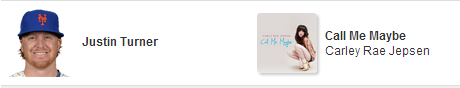 Third Carly Rae appearance. Come on Justin Turner, you’re the most generic scrappy white utility infielder ever…choose something weirder !