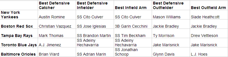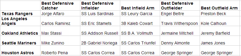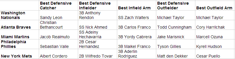 Best Infield Arm: 17 3B’s and 13 SS’s