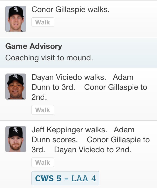Basically, the Angels are terrible. Specifically, their bullpen. The Angels had a 4-2 lead heading into the eighth inning on Thursday night. The super tall Dane De La Rosa (who?) gives up two runs and the game is tied 4-4. Mike Scoscisocisocisociacoiaosicsa brings in Michael Kohn to face Paul Konerko with Adam Dunn on first and one out. Kohn gets Konerko to ground out, and Dunn advances to second base.