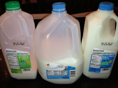 Details: Three jugs of milk totaling about a gallon. Not stale at all. Package includes both skim and 1% milk. A really big haul.