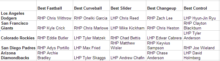 Best Changeup: 17 RHP’s and 13 LHP’s