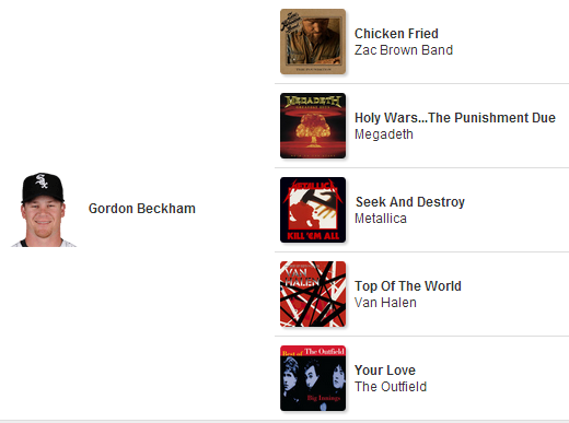 While there are a seemingly unlimited number of ways to experience the game of baseball through social media from the comfort of your own home, there are a few things that you can only truly get by attending a game. One of these, is the walk-up music chosen by the players of the home team. I’ve recently been exposed to the fact that many of the walk-up songs for specific players are available online on each team’s respective site. This is fantastic news for those of us who aren’t so lucky as to visit every MLB park and hear each player’s music. Here at CFB I’m gonna take a look at some of the highlights of this rather awful collection of music that MLB players have decided represent them/pump them up/introduce them best.